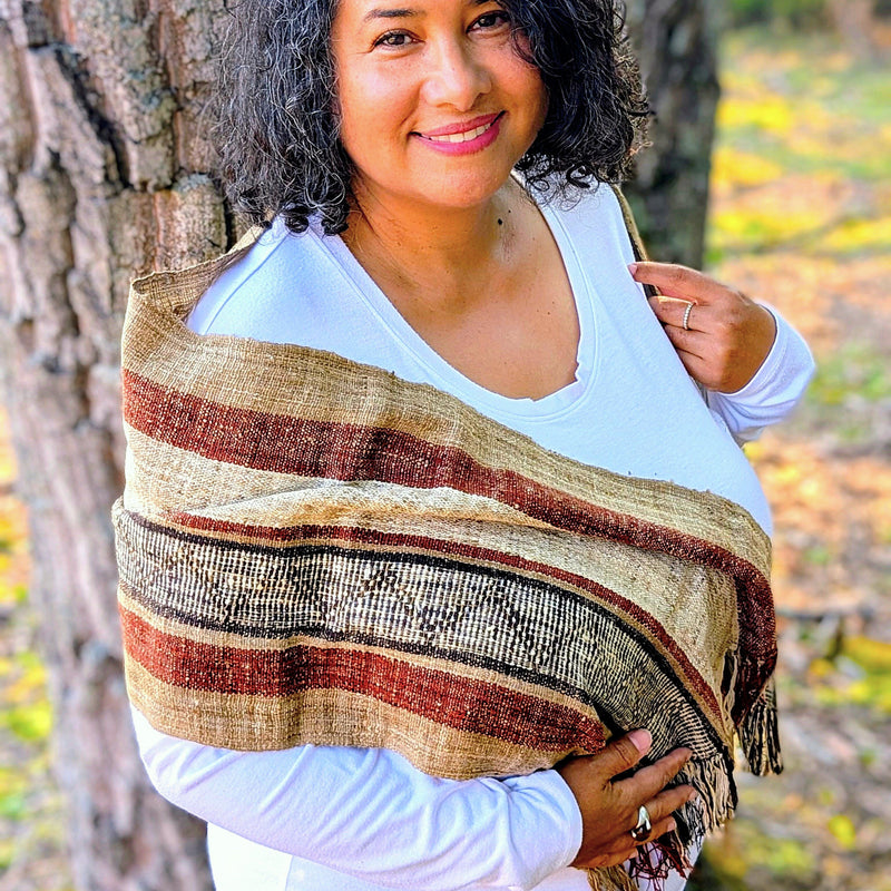 MADAGASCAR SILK SCARVES. This hand-crafted silk is lustrous, strong, and soft. You don't have to baby it- throw it in your bag and you're off! Wild silk is warm and breathable. It magically seems to adjust to the weather- letting air in when it's warmer, and insulating when it's colder. The length is ample so you can wrap your scarf as you like, but not too long where it gets in the way. (Some people also like to use them as table runners.) Dimensions are approximately 12.5" x 70" - as these are completely hand-made, each piece can be slightly different but will not vary much.